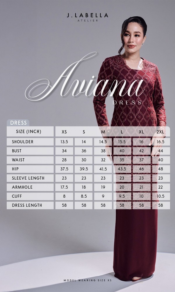 Aviana Dress is crafted from chiffon with full lining, showcasing refined elegance. The design features an all-over geometric sequin embroidery that adds texture and sparkle. The scalloped hemline and sleeve cuffs are accentuated with ornate bead and sequin detailing, while the square neckline adds a modern, structured touch to this timeless silhouette.