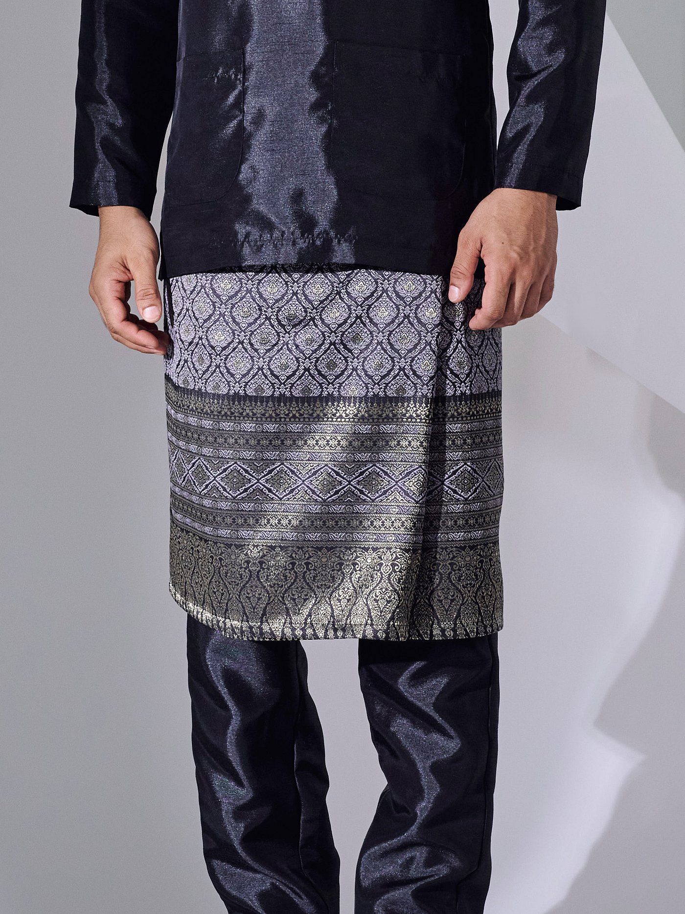 J.Armani Sampin is made from songket material with exclusive looks and easy to wear. Because of looks are authentic and sophisticated, the sampin are suitable to use for any occasion. Furthermore the sampin is free size, can be use from XS to XXL